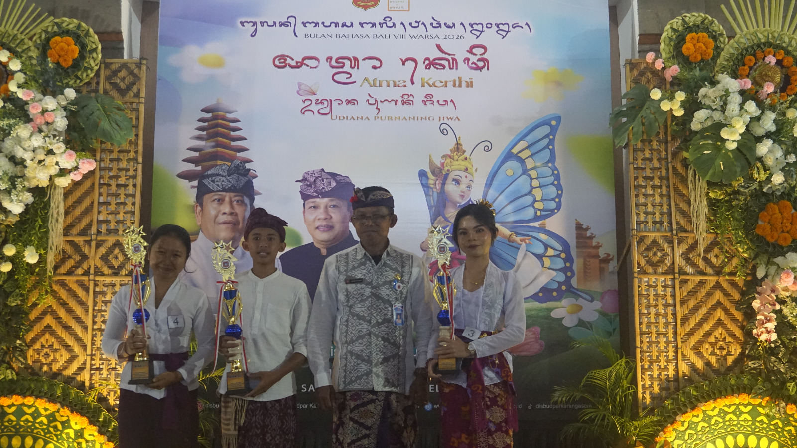 Setelah rangkaian lomba pada hari ini berlangsung, dan dewan juri sudah memutuskan dan menentukan pemenang lomba, peserta yang dinyatakan sebagai pemenang menerima hadiah berupa piala yang di serahkan langsung oleh Skretaris Dinas dan Kepala Bidang Kebudayaan dan Kesenian Dinas Kebudayaan dan Pariwisata Kab. Karangasem serta Para Dewan Juri Bulan Bahasa Bali VIII Kabupaten Karangasem Tahun 2026.